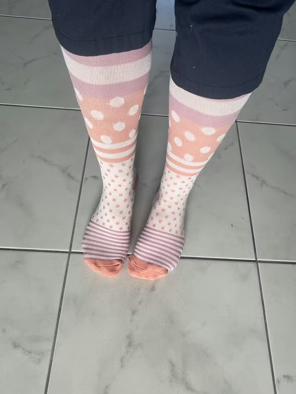 Gün boyu giymek için rahat ve nefes alabilir, Kesinlikle tavsiye ederim. Hele normal kompresyon çoraplarına göre daha renkli ve sevimli olmaları yokmu bayıldımmm